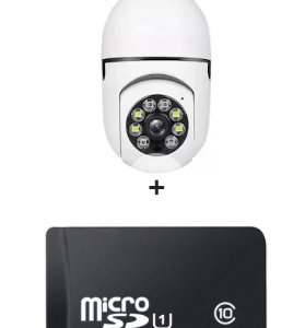 100/bax-Camera supraveghere WiFi 8177HJ tip bec cu soclu E27 vedere nocturna + Card de memorie MicroSDHC Techstar® Clasa 10 de 32 GB