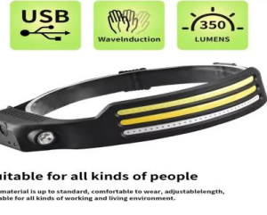240/bax-Lanterna de cap Profesionala, Waterproof, Unghi larg de iluminare, COB Led puternic si senzor miscare, pentru vanatoare, pescuit, camping, santier, Culoare Negru