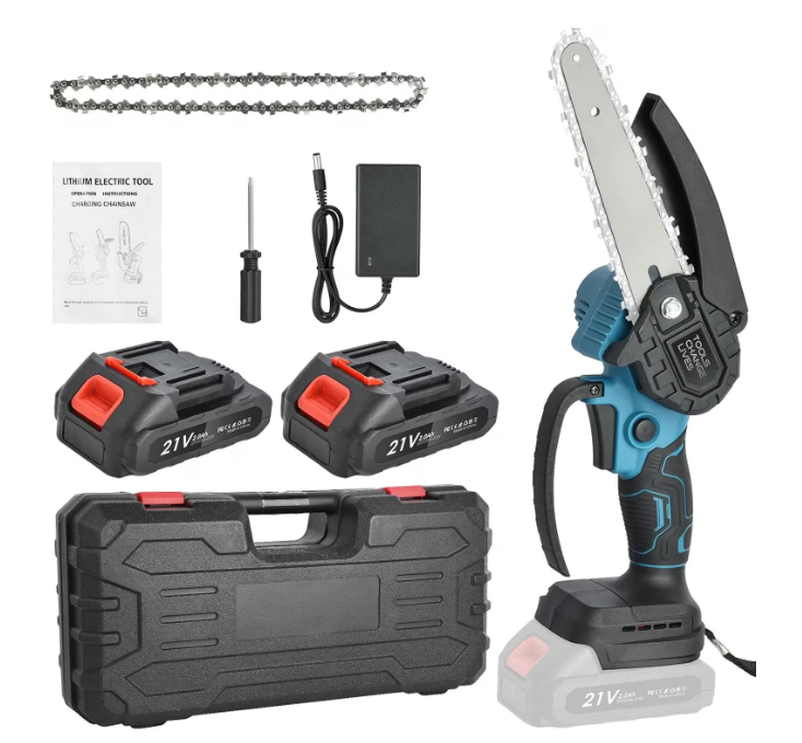 10/bax-Mini fierastrau electric fara fir, cu lant 6 inch si 2 acumulatori 2000mah, 48V
