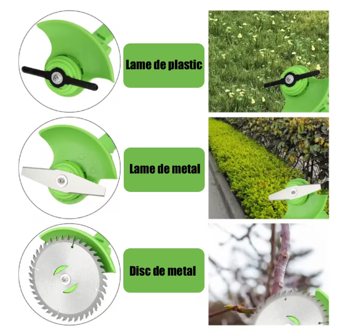 Disc circular din otel: excelent pentru taierea ramurilor groase de arbusti, oferind o capacitate puternica de taiere.