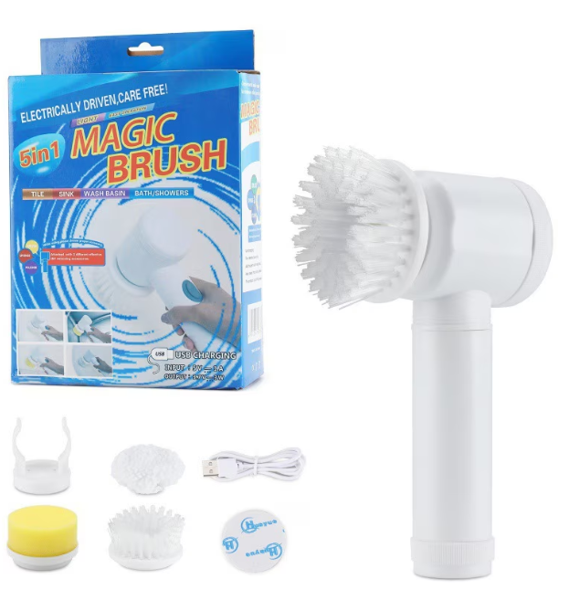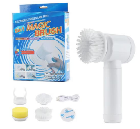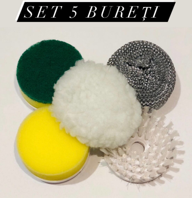 64/bax-Perie electrica de curatare cu 3 capete rotative + SET DE 5 BURETI, incarcare USB, alb, multifunctionala